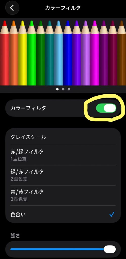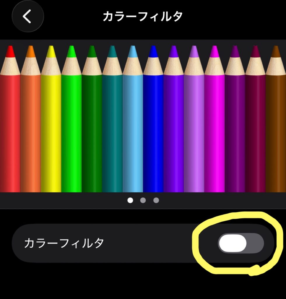 これで、サイドボタン(電源ボタン)を連続で3回クリックすると、画面が赤くなり