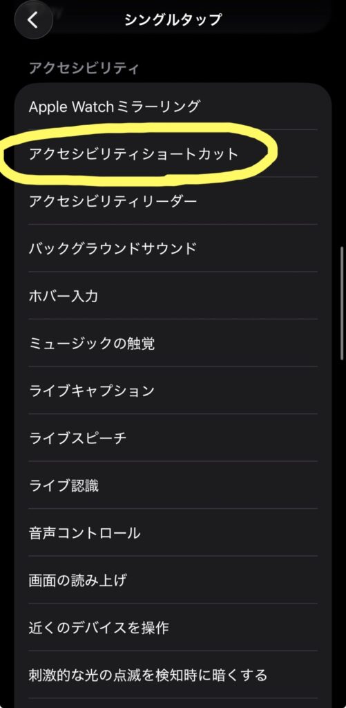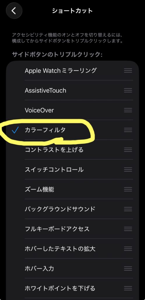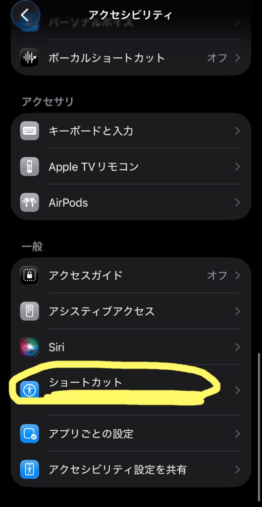 ※「アクセシビリティショートカット」項目の横にチェックマークが付いたら完了です