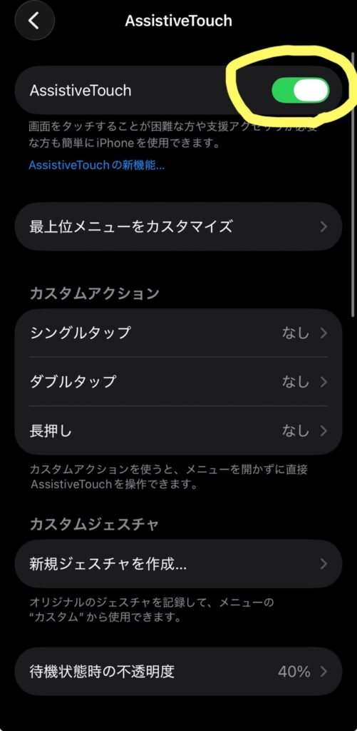 ※小さな◉が画面上に出てくると思います。これが「AssistiveTouch」です。