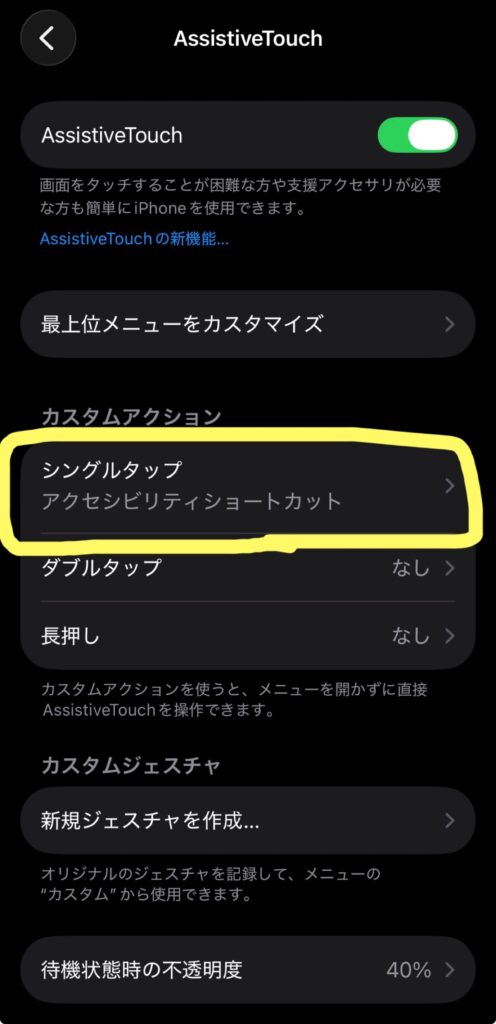 ※シングルタップはAssistiveTouchを1回タップ、ダブルタップは2回連続タップすることで、